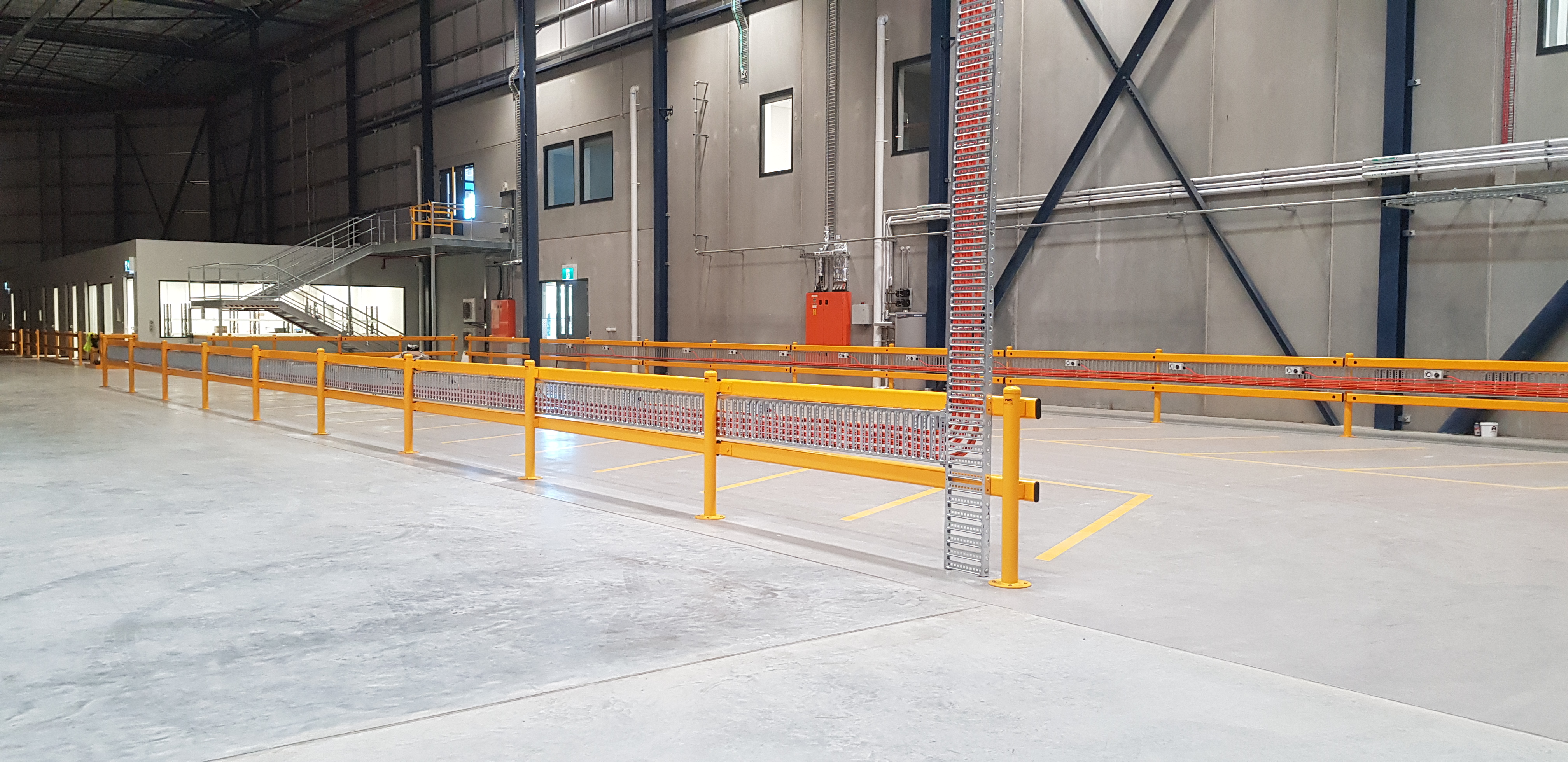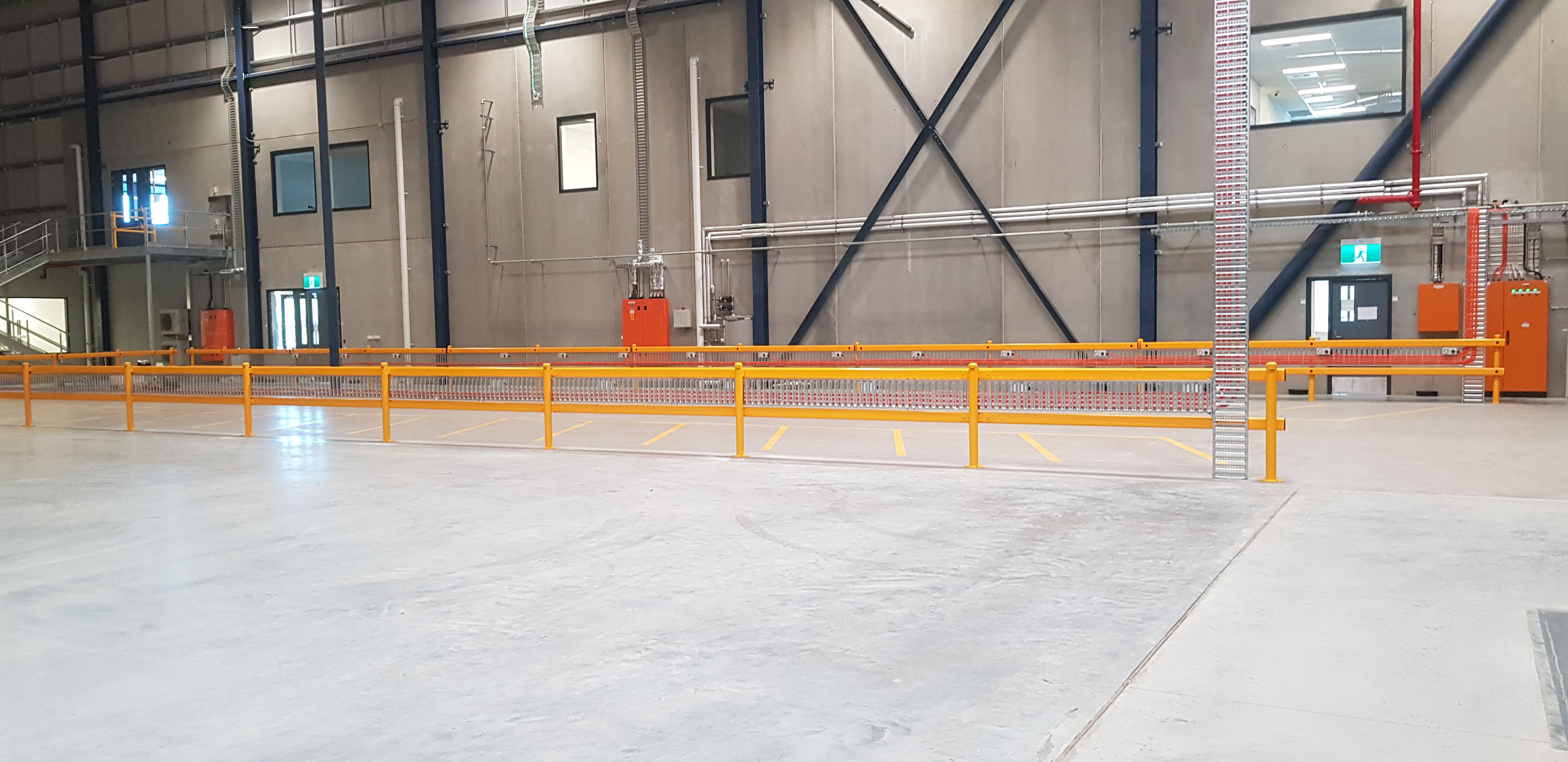 The consistent flow of incoming and outgoing stock creates risk of injury for employees and pedestrians in the supply centre. As warehouse and logistics work environments typically require pedestrian and forklift traffic to work within proximity of each other our clients required an adequate separation of pedestrian and vehicle traffic.