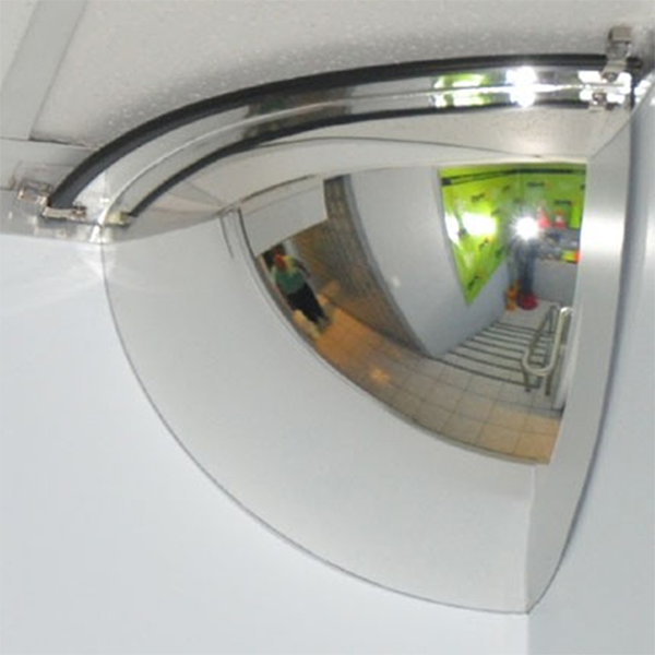 Our Quarter Dome Mirror Range grants 90 degree visibility for up to 30 meters to reduce hazards and dissuade theft in stores and public areas. With a crystal clear image, this mirror is suitable for any indoor corner to maximise visibility.